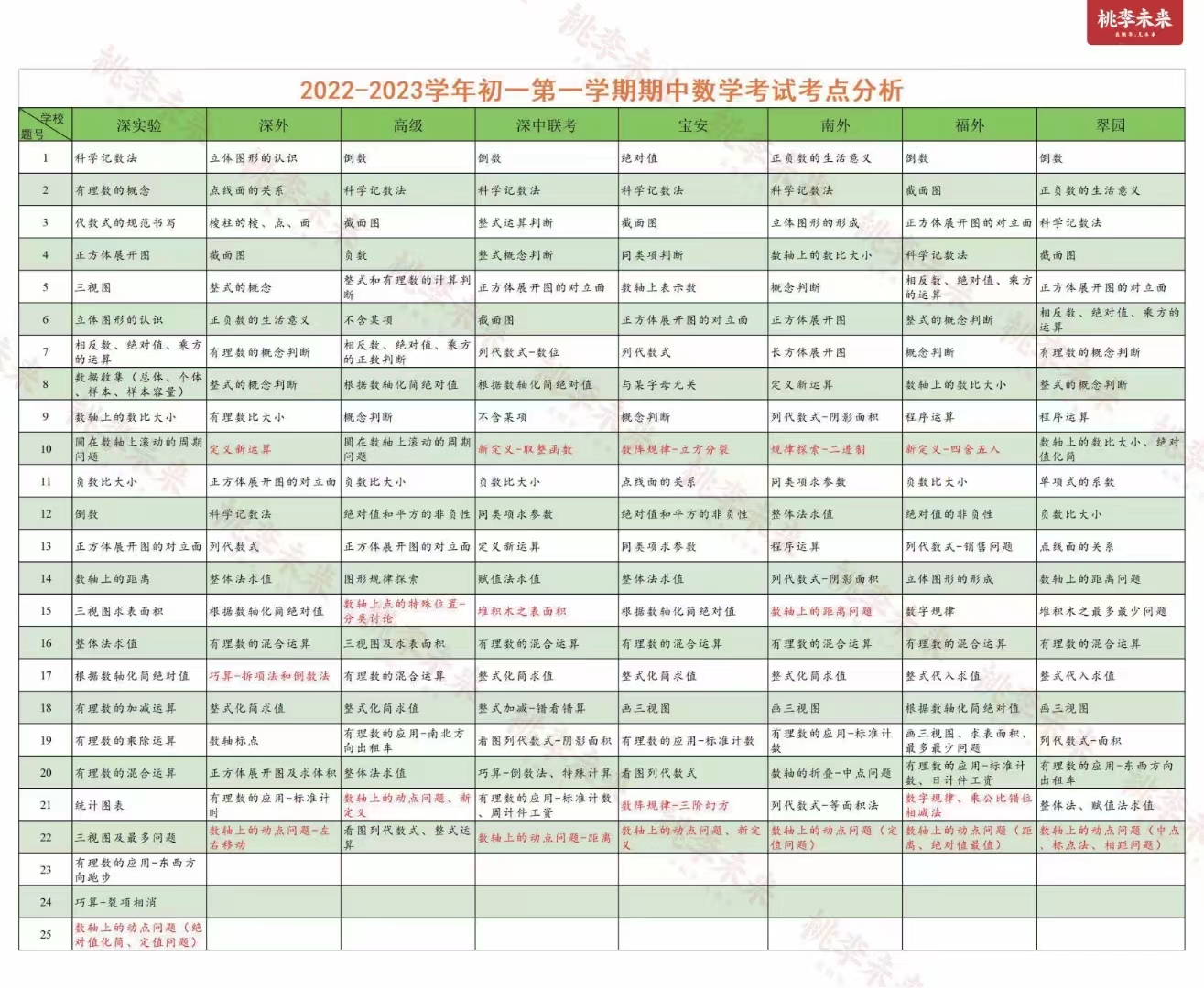 2022-2023学年 初一第一学期期中数学考试考点分析。深圳实验学校,深圳外国语学校,深圳市高级中学,深圳市福田区外国语学校,深圳市翠园中学期中数学。