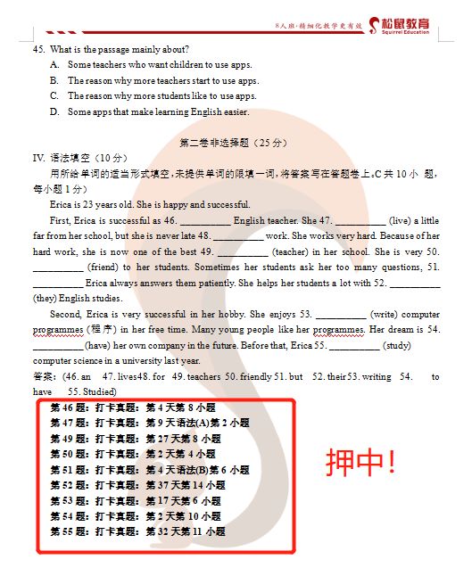 深圳松鼠教育各学科期末考试真题压中题